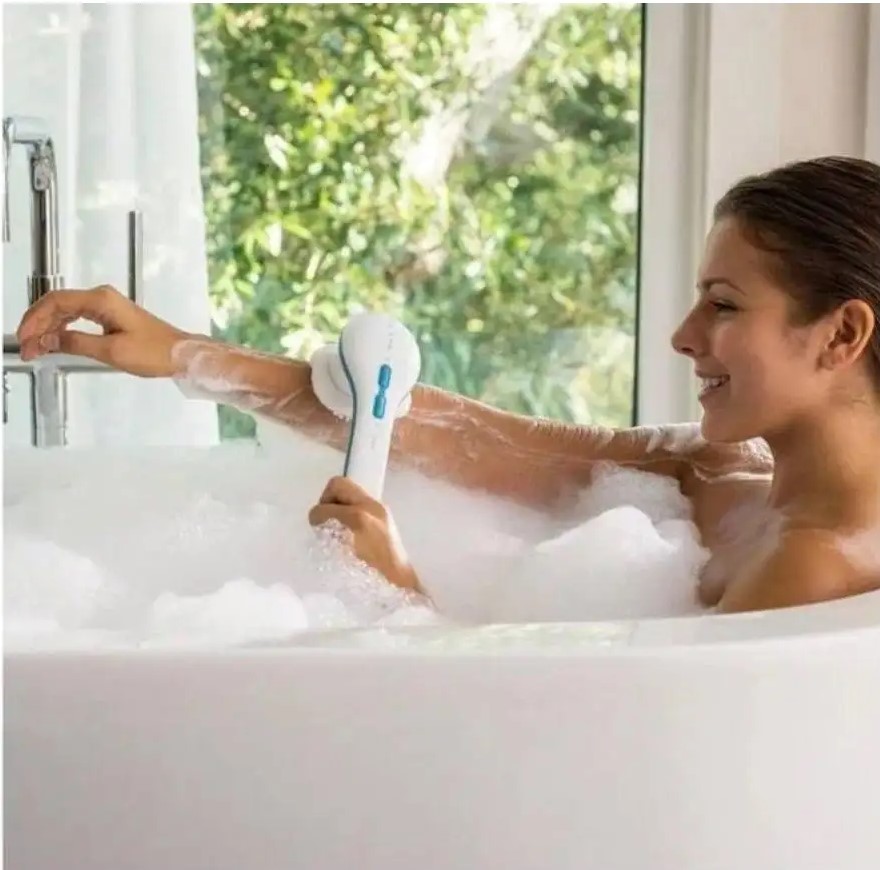 Massage Bath Brush- массажная щетка для тела. Набор 5 в 1 - электрическая домашняя щётка для очистки тела в ванной, в душе, для скрабирования и массажа кожи, инструмент для ухода за здоровьем.